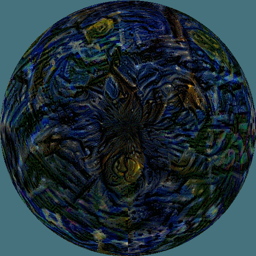 If you want to use AI to produce a texture map of a sphere, you need a view layer that can project your texture map onto the sphere before the AI vision system perceives it. Also, since it is impossible to see the entire surface of a sphere from one viewpoint, we need to simultaneously optimize many different viewpoints to produce a balanced result. An experiment notebook has been prepared which does exactly this, and produces interesting textures on a sphere.