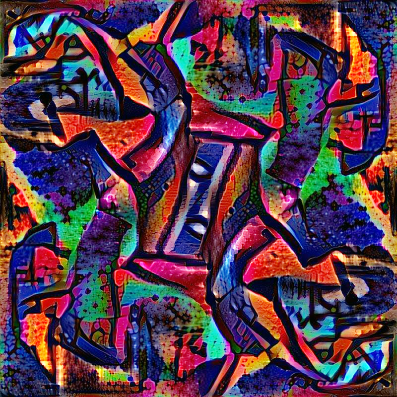 A good analogy to understand this is to think about a human artist. That artist uses their vision system in everyday life, but today they are using it to make a painting. Whatever they have currently painted on the canvas goes through their eyes, is processed by the vision system, and then is interpreted by the brain. The artist asks “is this what I want?’’ and it then sends instructions through the spinal cord to add new brush strokes to the painting (or throw it into a fire). Where the physical act of painting is handled by the hand (via the spinal cord), the changing of an objective image is handled by the optimization algorithms of the neural network platform. Where the human artist’s existing vision system is used to interpret the painting in progress, an AI artist uses a preexisting vision network to interpret the working canvas. In both deep dream and deep style transfer, the objective is key in determining the image; similarly, the human artist’s output is determined by the conscious ideas in their own head. The Deep Dream objective attempts to maximize the outputs of certain neurons, for example the “cat” neuron to focus on cats. The Style Transfer objective attempts to match the pattern of activations, on average, to a style image.