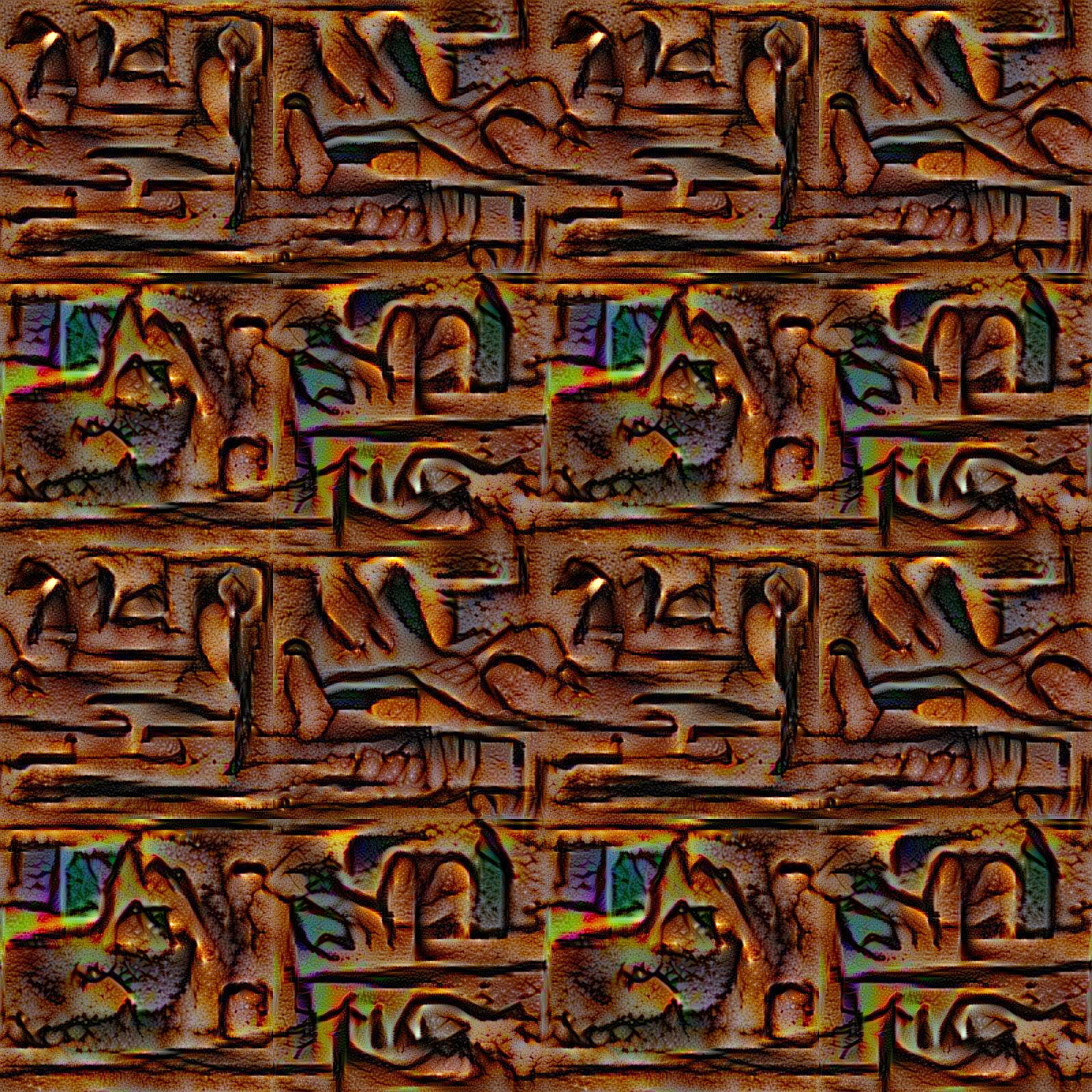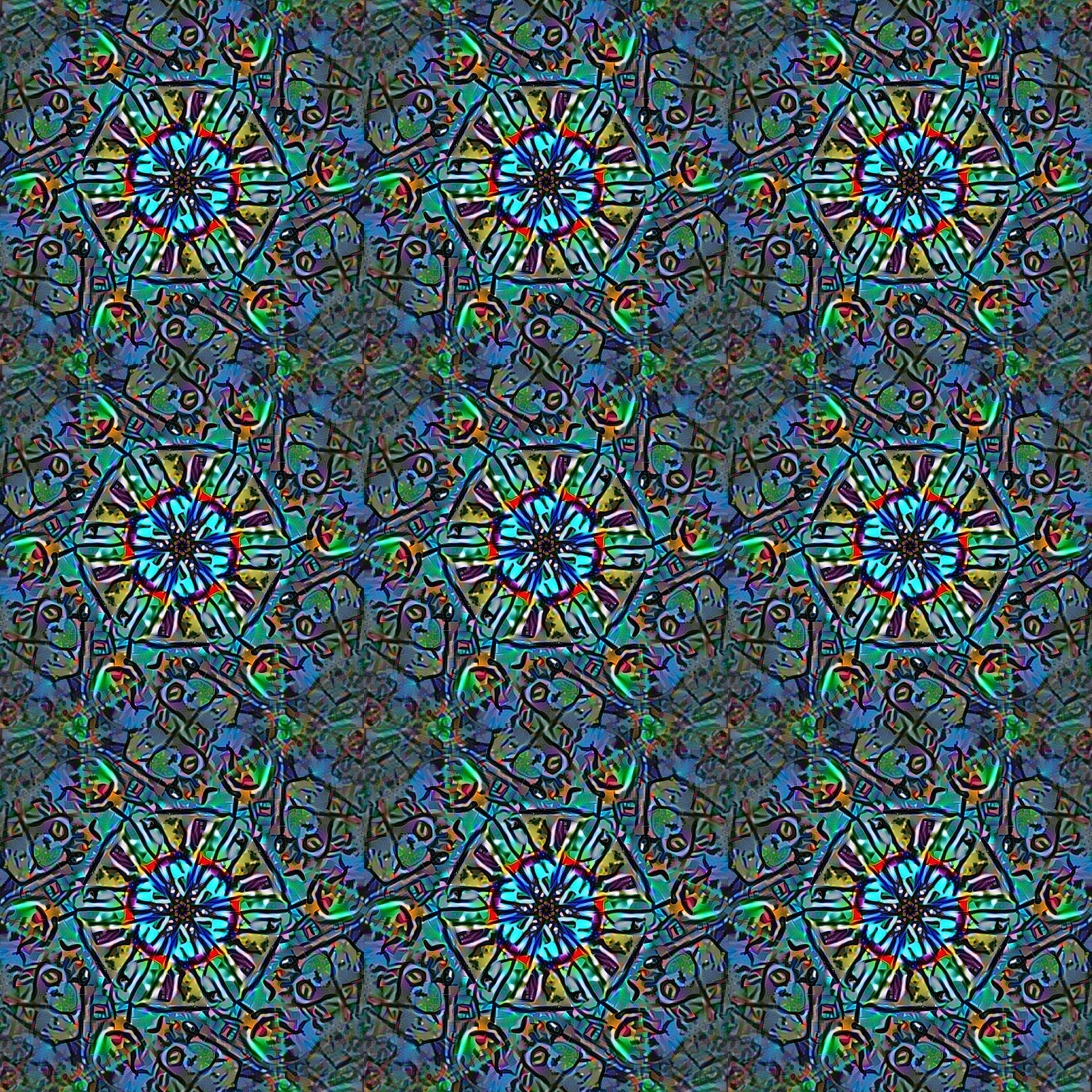 This project started when I was playing with AI texture generation and trying to develop textures that are capable of tiling. I wanted images suitable for a desktop or web background. The solution was to not only optimize a view of the normal tile but to optimize it pre-tiled as a 2x2 square. This caused the network to not only produce a texture, but to seek one which avoided any unsightly discrepancy despite the periodic nature. This works well, and we can use any aspect ratio (for square, wide, or thin tiles) but we always see the same rectangular repetition which is noticeable and not very aesthetically pleasing.