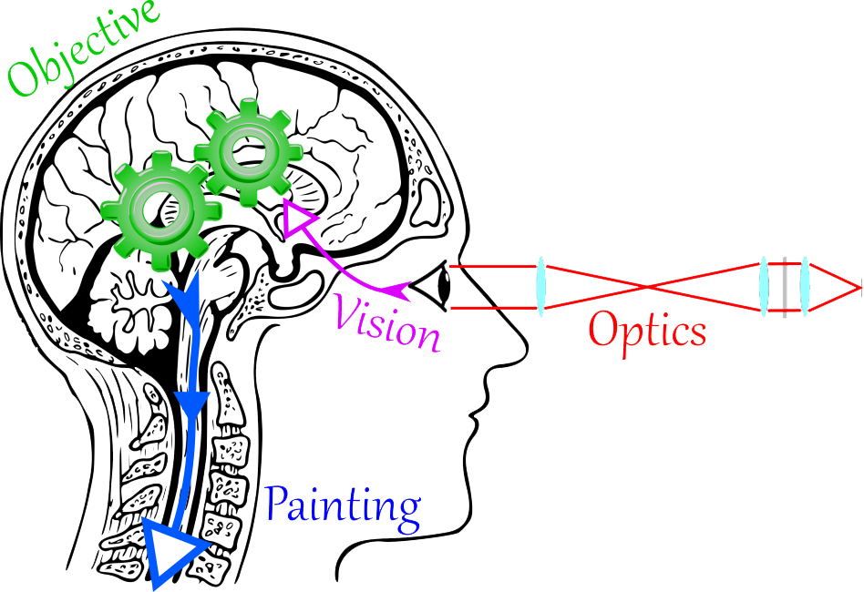 My experimentation has used basically the same process but adds an additional “opticals” in front, before the neural vision layers. This is very much like the human artist viewing their painting through a kaleidoscope and designing the painting to look appropriate in that context. This article is more about the construction of that “Kaleidoscope” than it is about any of these other components.