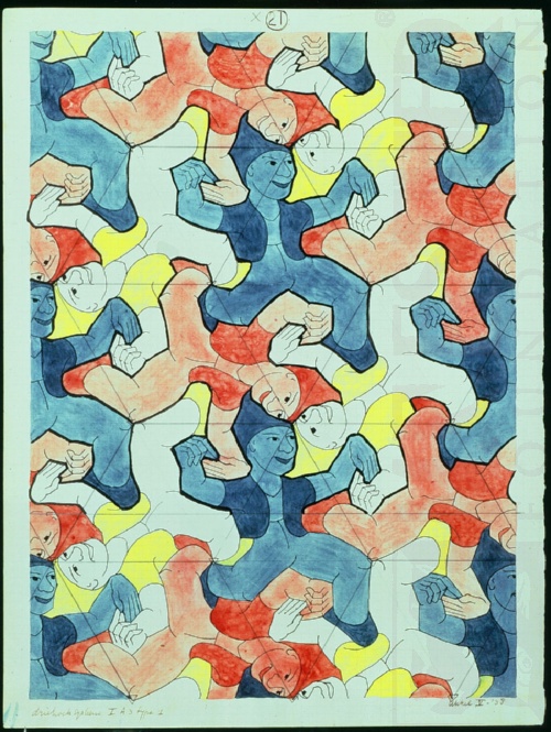 The ability of a regular tiling to morph from one pattern into another was also explored by Escher, notably in his “Metamorphosis” series.